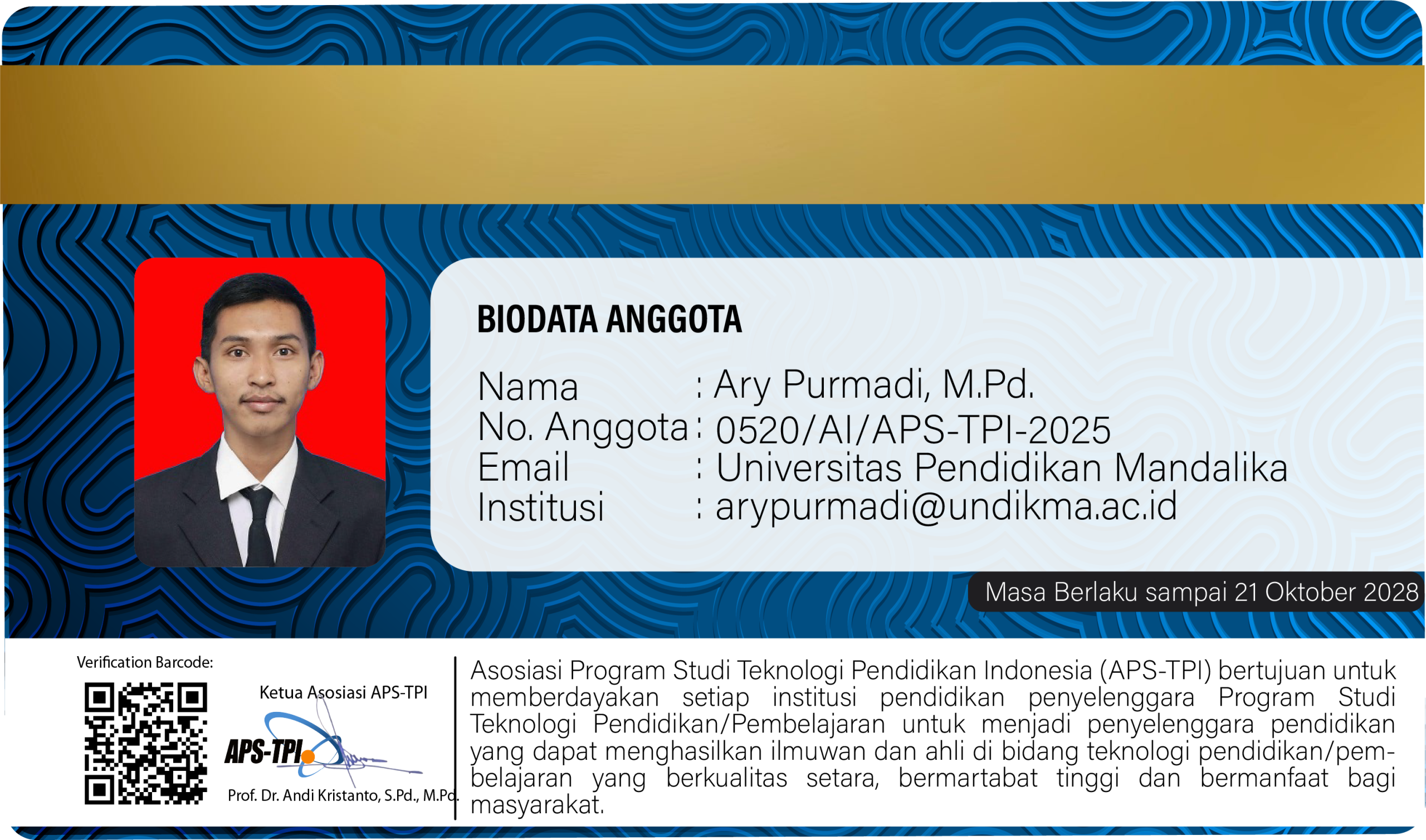 | Ary Purmadi, M.Pd. | Universitas Pendidikan Mandalika | Lihat Detail |
